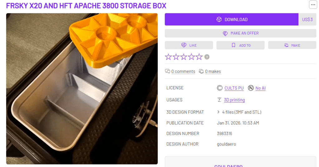 I have the .3dm & .stl files up on Cults3D for this one: https://cults3d.com/en/3d-model/gadget/frsky-x20-and-hft-apache-3800-storage-box