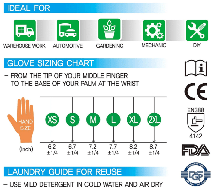 - [MULTI INDUSTRY & FOOD CONTACT] – Suitable for DIY, Machine operation, Oily material handling, Light engineering work, Assembly line, Warehouse work