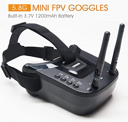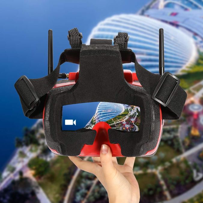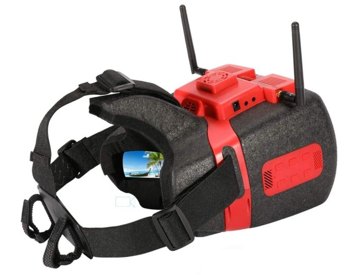 - 92% transparent lens adopted, no distort, no blur on the edge of screen;Light weight 375g with 3.5 hr 1200mAh battery, RTF for any scale racing game;5 Inch 800*480px HD high brightness LCD
