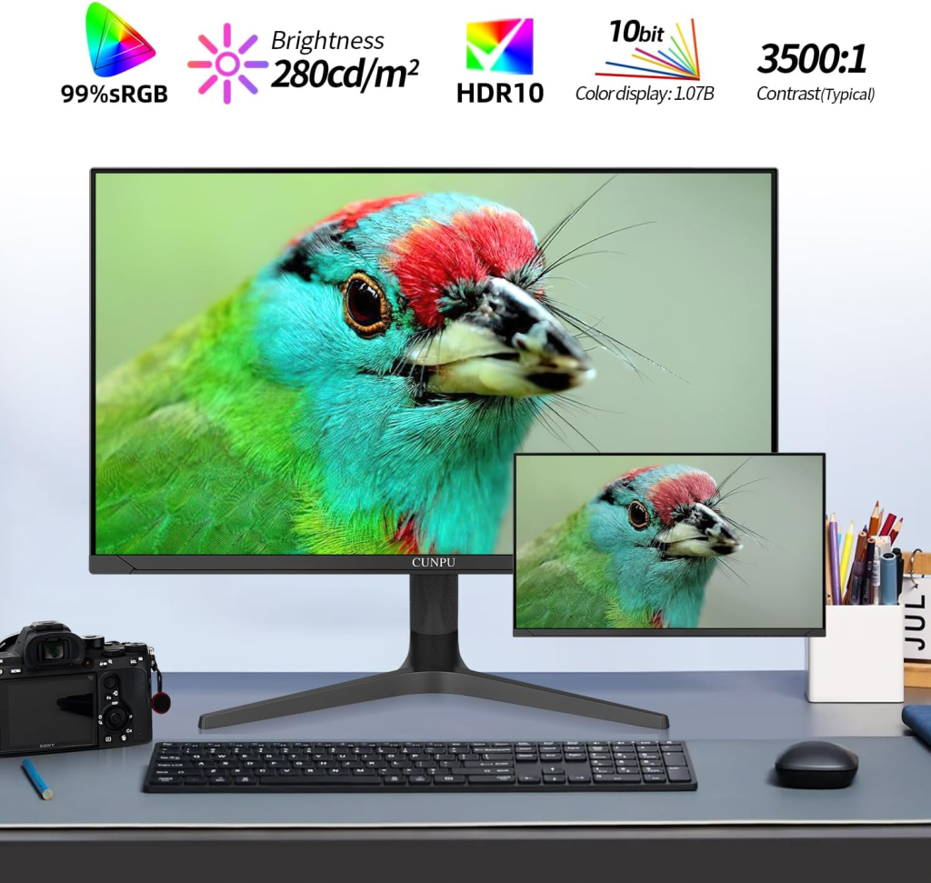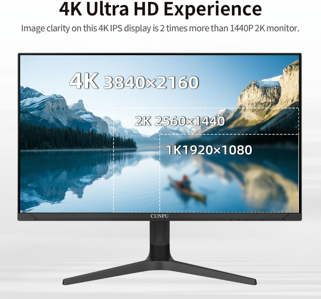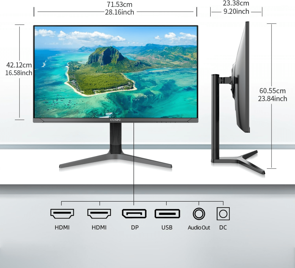 If your looking for a large 4K monitor that can fit within a corner desk or cubical setup look no further than the Cunpu 32″ 4K