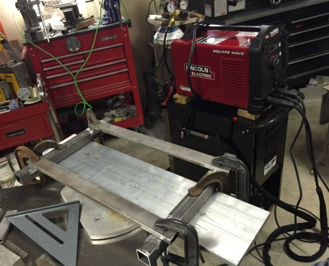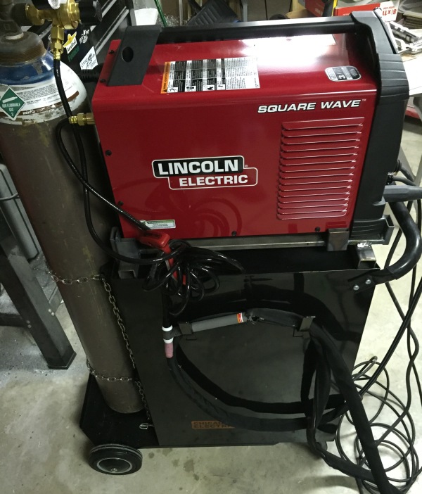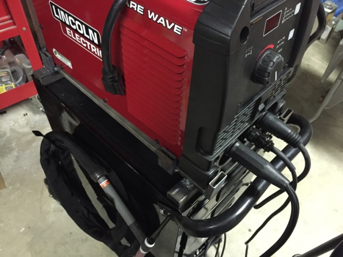 The cart is very well constructed and has space for all your welding accessories for 40 – 60 Lbs inverter based machines. One challenge with the welding cart vs. the TIG machine was the +, – & foot petals plug in real low on the TIG 200, the cart has a handle that kicks up so you can get into the top drawer easy. I could have made another handle for it but thought a Stand Off would give some real good welding practice, get it off the top of the cart a bit for ventilation and be able to put in some more aggressive Cleats to make it more stable on top
