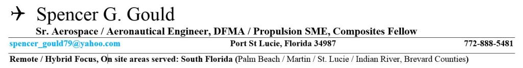 Gas Turbine: Doosan DGT6-300H IGT, Pratt & Whitney (PT-6, F-135, HPW3000, Geared Turbo Fan (GTF), FT4000 Industrial Gas Turbine (IGT)), GE (T-700) Cross sections, Modules (Fan, Compressor, Turbine, Externals) Kinematics, Variable Vanes, Sync Rings, Vane Arms, Core / Bypass Valves, Isogrid / Split / Ring Engine Cases, Integrally Bladed Rotor IBR, Dove Tail / Tree root blade connections, Labyrinth / Brush / Knife / Honeycomb Seals, Oil Coolers, Ducting, Hallow Fan Blades, Advanced Composite Primary Structures, Material & Process, Industrial Planning, Project, Program, Validation, Procurement, Airframe interface, Titanium & Super Alloy Processing, Heat Shields, Fire Suppression, High precision castings, bleed air, turbine cooling, TOBI, Heat Transfer, Bearings, Bushings, Goodman & Campbell Diagrams, Modal, Fan Blade Out (FBO), Bird Strike, “LO”, ACC, pylon, Tolerances, Thermal Expansion, Clearances, Fuel-Draulic Rotary Vane & Piston Actuators, NASA Glenn Wind Tunnel, Nacelles, Bifurcation, Engine Dynamics & Loads (ED&L) / Engine Test Stands, Abrasive Flow Machining (AFM)