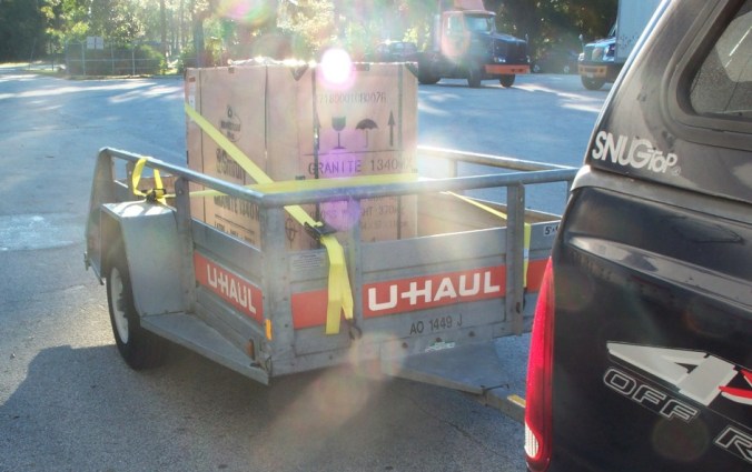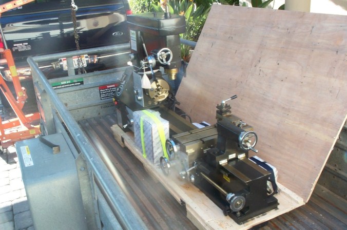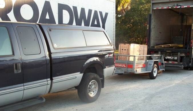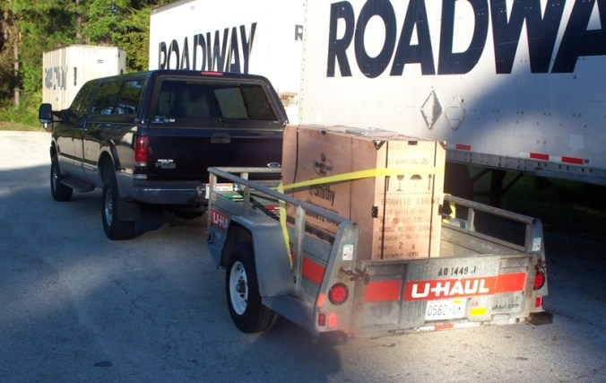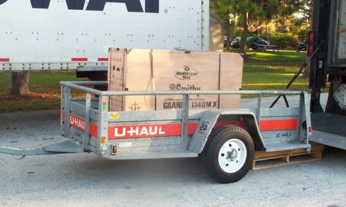 The machine was shipped via Roadway trucking to their terminal in Daytona Beach where we transferred via a fork lift into a drop gate truck, then from the drop gate into my rented Uhaul trailer. This truck terminal did not have a ramp to get things from trailer height ~4′ to ground level.