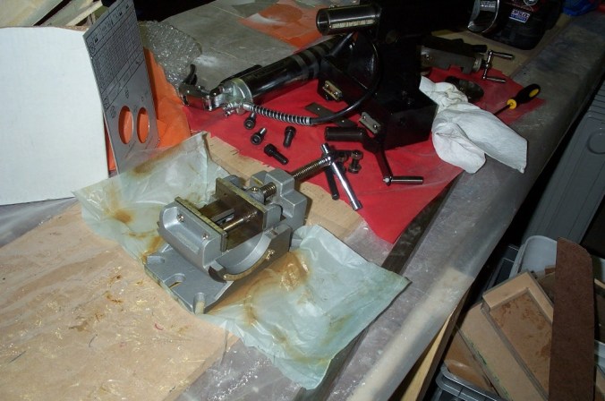A close up view of the supplied vise, it turned out to be a very light weight vice for machining and broke after a few years of use.