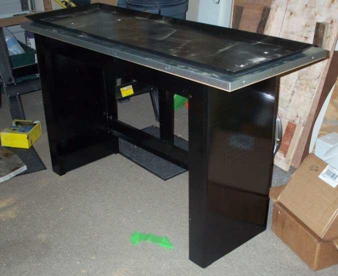 for extra rigidity aluminum L channel clips where bolted between the MDF base & the sides of the table.