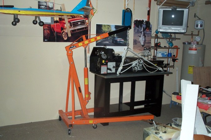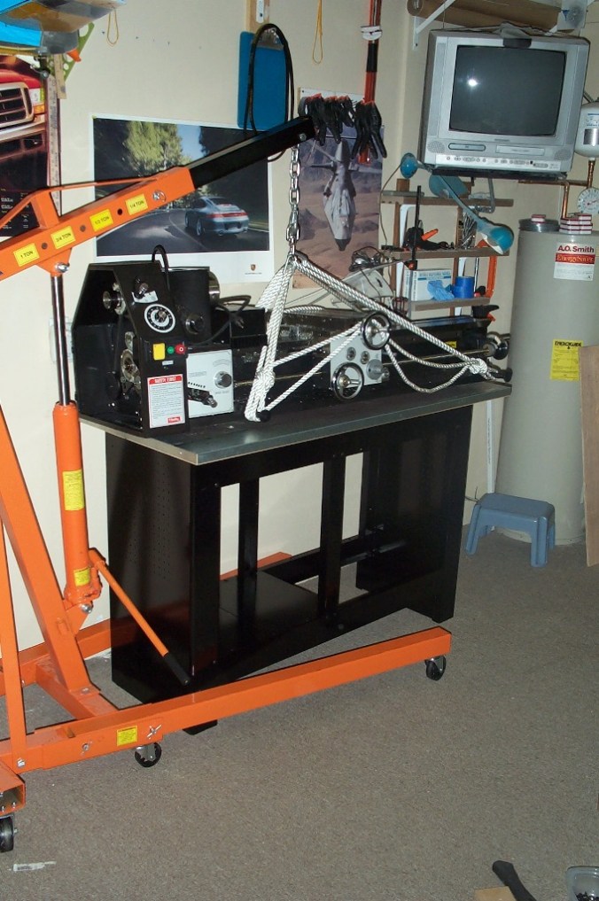 first time putting the machine on the table, this is a 1 ton HFT engine hoist and it grunted a lot when lifting it with the hydraulic jack, a 2 ton engine hoist would be more recommended.
