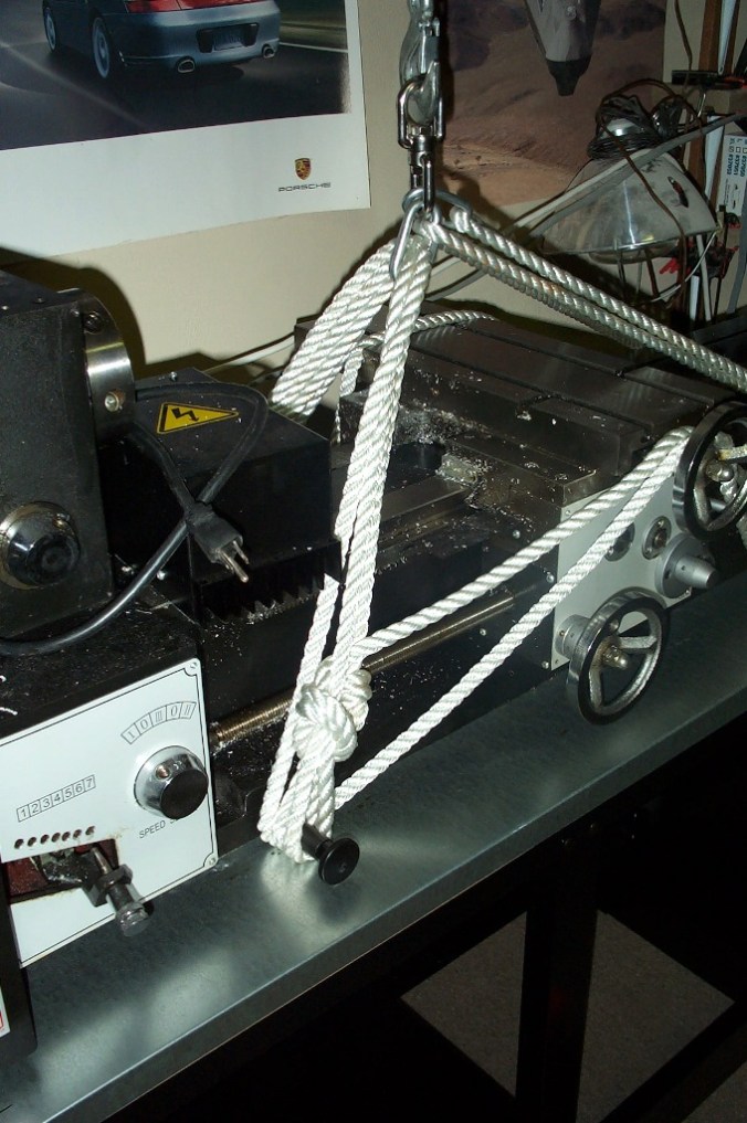 Since this was a weekend trip up to Daytona to make this all happened I needed to get everything in the Garage & get the trailer returned. When moving a machine of this size its easiest to remove the mill head, this also makes it less top heavy as the built in lifting post are at the bottom