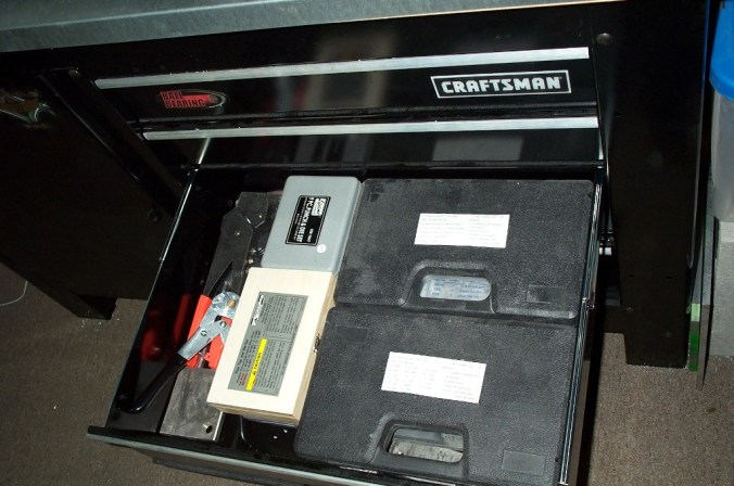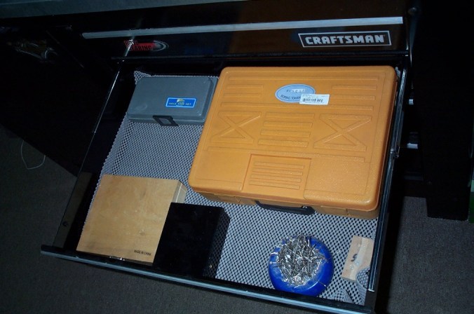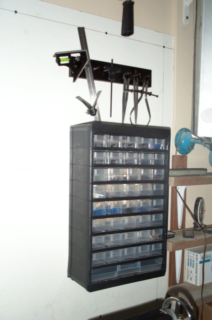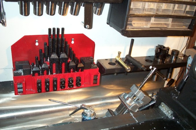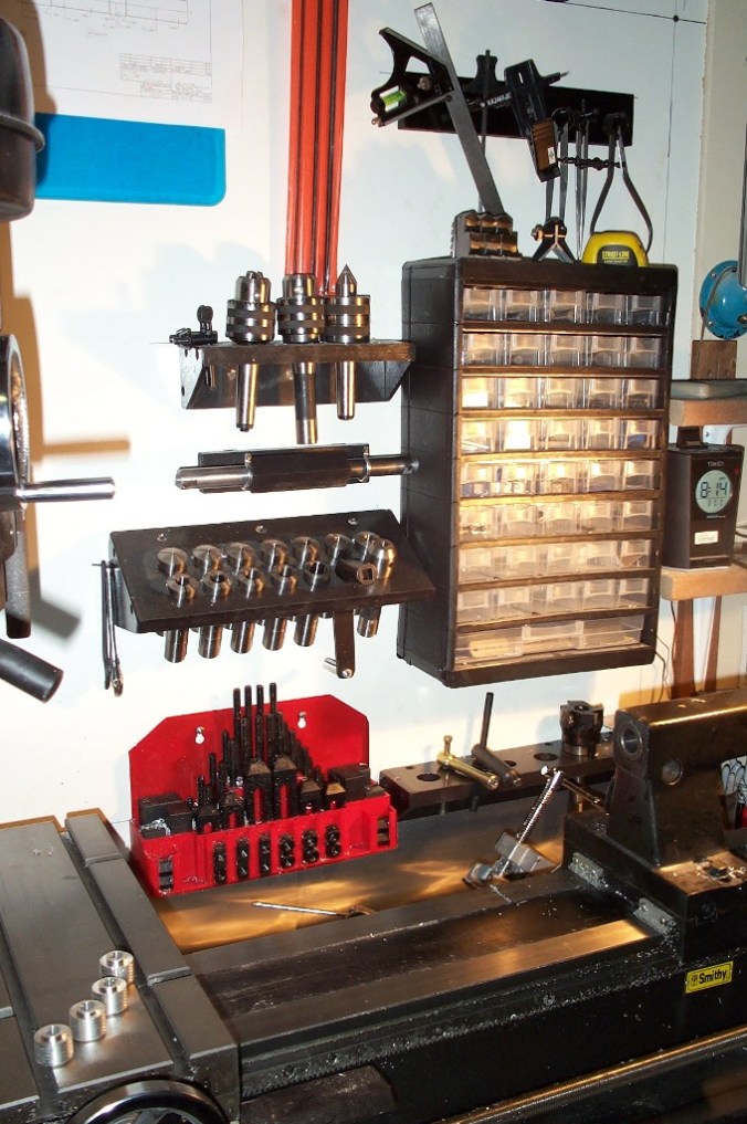 I built a tool holder out of MDF / painted to match, that holds my R-8 face mill, slitting saw, and lathe wrenches / drivers
